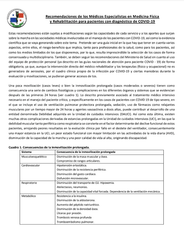 Somos un grupo de médicos especialistas en Medicina Física y Rehabilitación de Panamá, que estamos preocupados por nuestros pacientes en estos tiempos de pandemia por el COVID19.